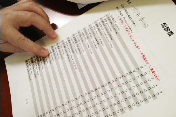 ▲まず問診表(たっぷり)に記入します。