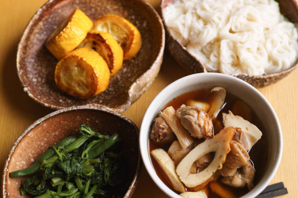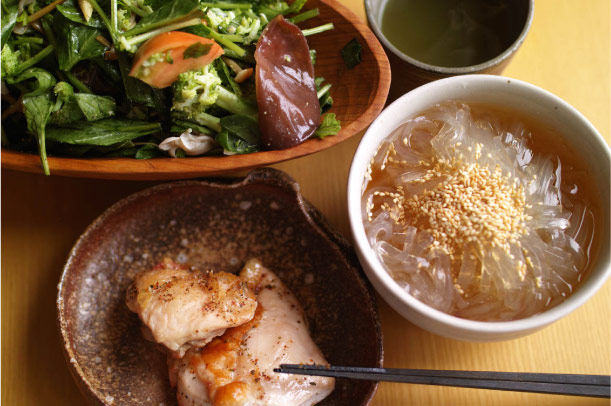 ▲この日はそうめん食べちゃった。でも野菜もたっぷりですよ!