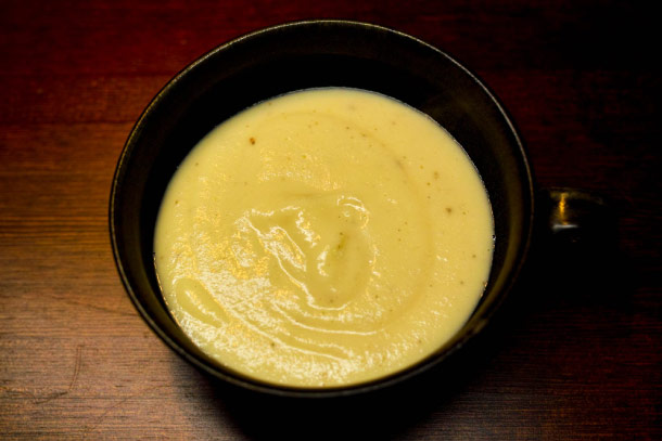 ▲これはカリフラワーとポテトとたまねぎを牛乳で茹でて、ミキサーでピューレにしたスープ。