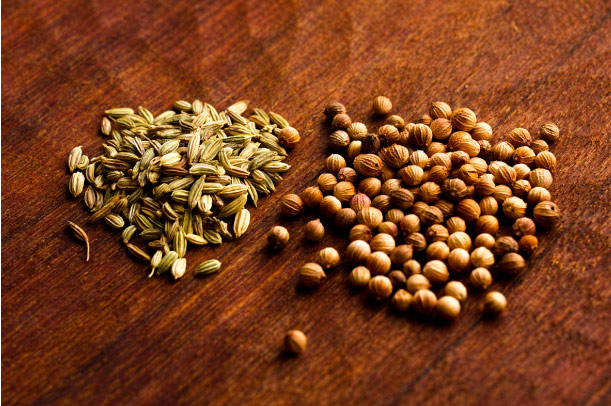 右のまるいのがコリアンダーシード。いわゆる香菜の「におい」はありません。