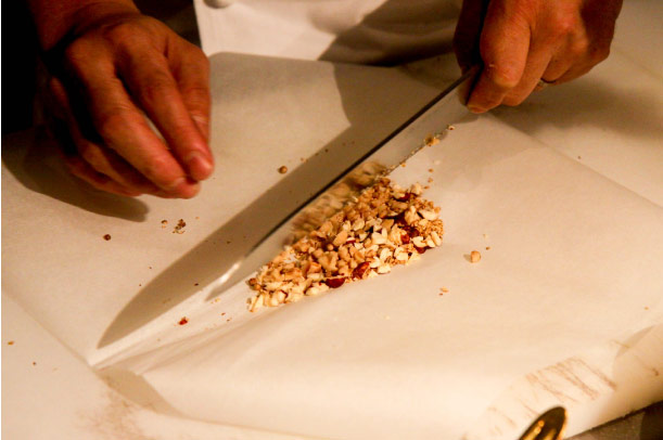 和知さんは「煎り」ではなく、生ナッツを使ってました。ぼくも生ナッツ派です。ぽりぽり。