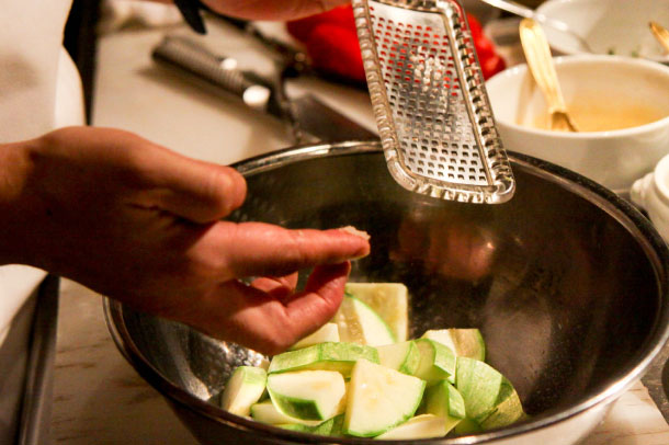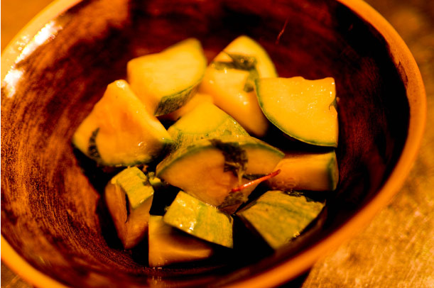 レモンの皮だけをちょっと使うっていうのも面白い。 「ぼく、レモン汁を絞って食べるっていうのが、 と和知さん。 「そう、香りが立ちますよね」 そうだ、柑橘を使うのも塩分カットにつながります。 「そう、人差し指は計量スプーン!」 |