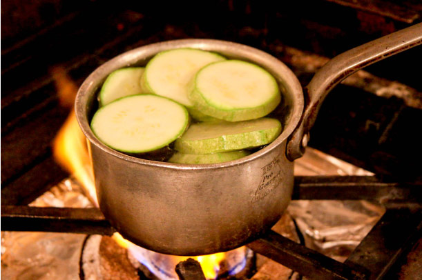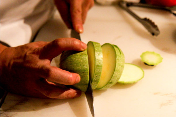▲ズッキーニを厚めの輪切りに。(工程1)