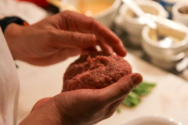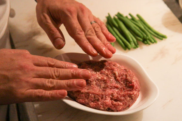 「さあ、これまで野菜をたっぷり 食べたーい! 「では、ヘルシーなハンバーグ、つくります」 |