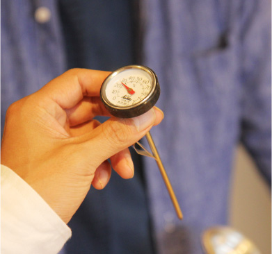 はい、ヘリまでいかないように。 「豆の状態によってかわりますが、 今日は10秒くらいですね。 「ええ。そうしたら、まんなかに、 |