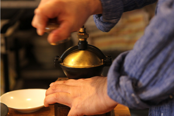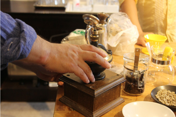 まずミルですけど、電動じゃないんですね。 「今日はいい手回しミルがあるので、 |