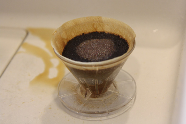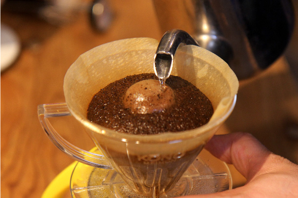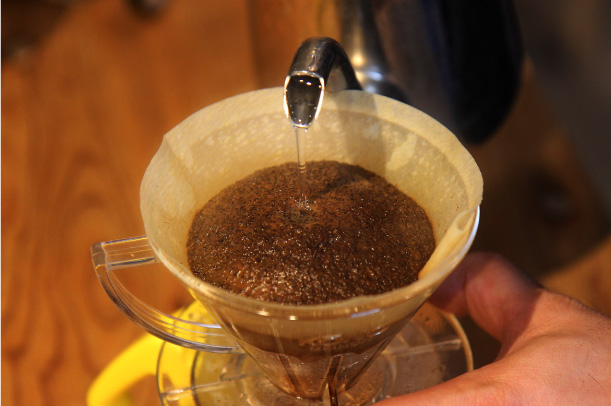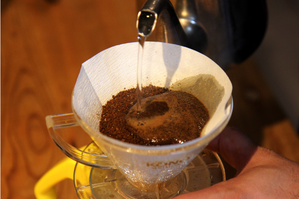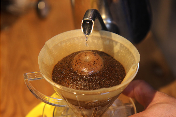 注湯が粗いとコーヒーの粉に十分に浸透せず、
