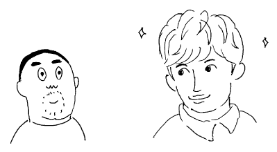 | これねえ、ぼくが特別顔がでかい、 というわけでもないはずなんです。 千葉くんが小さすぎるんです! |