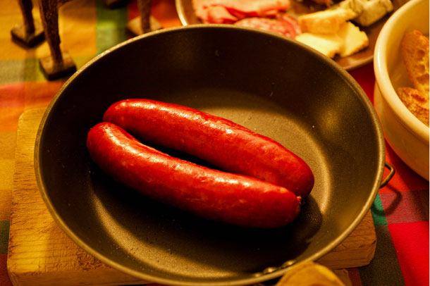 ▲ある日のごはん。おいしいソーセージを焼きました。