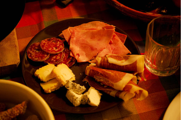 ▲これは買ってきて並べただけのハムやチーズ。千葉くんがきれいにお皿に盛ってくれました。