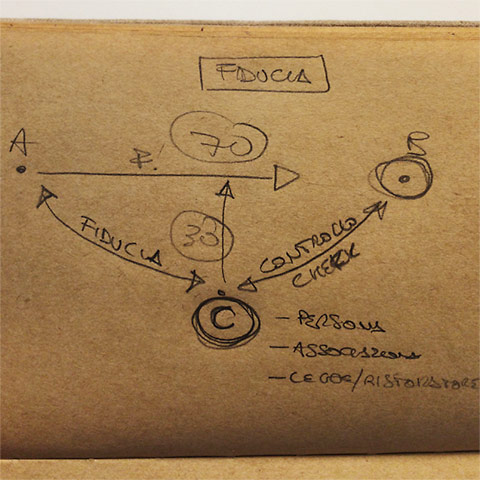 ▲ビアモンティさんがその場で描いた信頼関係のモデル図。
