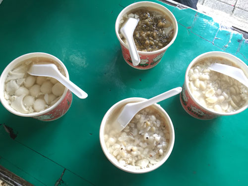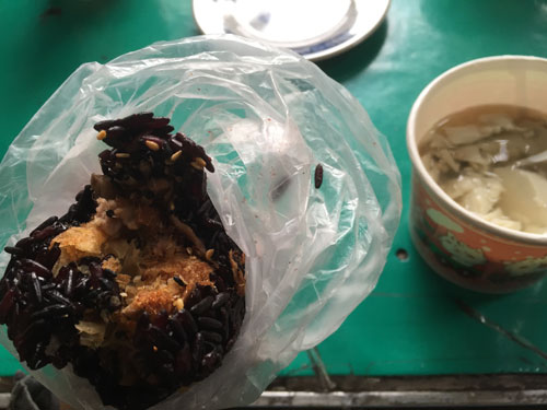 具は、揚げ麩と台湾のたくあん、肉のでんぶ。