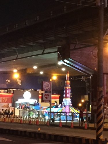 蘆洲夜市のほうで電気でビカビカしてるのは寺。