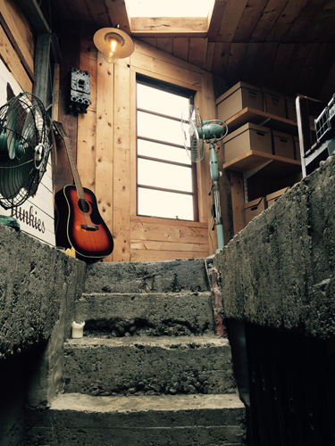 扇風機の羽を取って変な電球つけて照明にしたのも自家製。