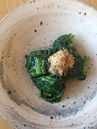 「茹で春菊に黒胡椒と生姜と塩、そしてごま油」