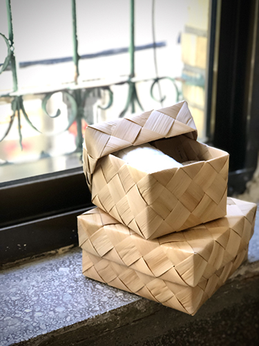 オリジナルの月桃の蓋付バスケットは、大小で作りました。