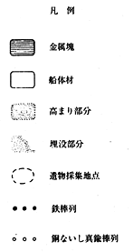 人工物の大半は、海底の砂礫中に埋没している状態で、