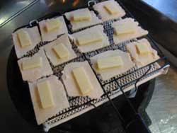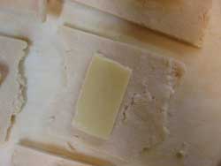 酒粕は、溶けにくいので、まず包丁で刻みます。