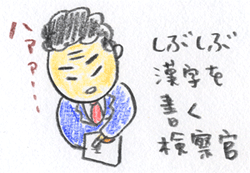 検察官が最初に書いた漢字は