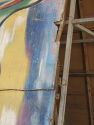 夏との温度差で壁画が反ってしまい、画面が‥‥