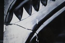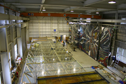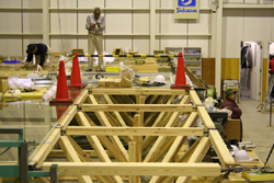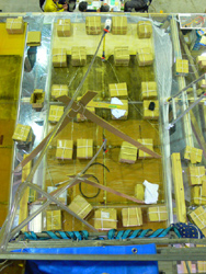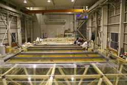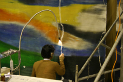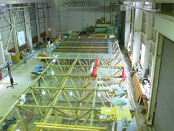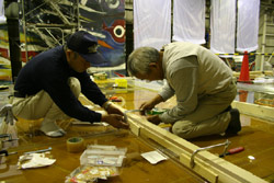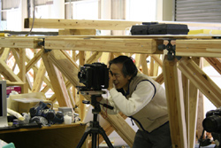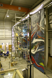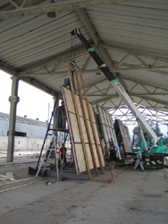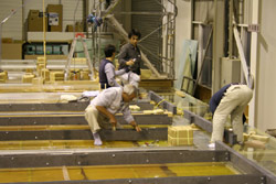 作品を徐々に垂直まで起こす作業がはじまります。 |