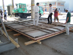 日本へと運ぶ木箱の上に乗せて包んでいきます。 |