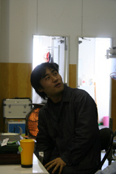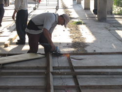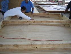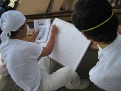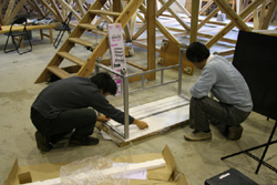 作業用のテーブルづくりを吉村さんと一緒にしています。 |