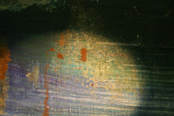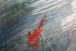 緑色の絵具の上に、白っぽくゴツゴツとしたものが