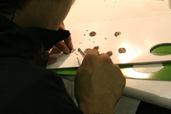 回収した小さなパーツにもナンバーを入れていきます。 |