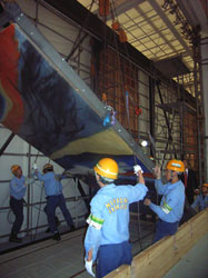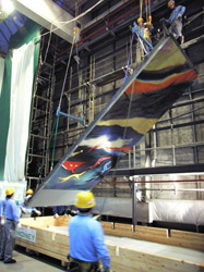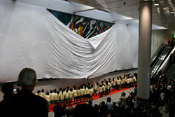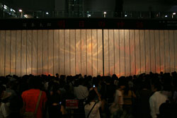 『明日の神話』除幕の瞬間を伝える特別生放送。