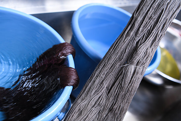 自分の持てる糸の数に合わせて水を小分けにして染めます。
