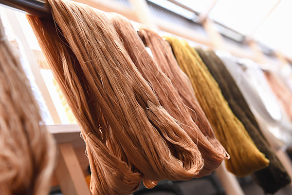 ▲いろいろ試行錯誤して、ほんとうにたくさんの糸を染め上げ、こうしてストールができあがりました。