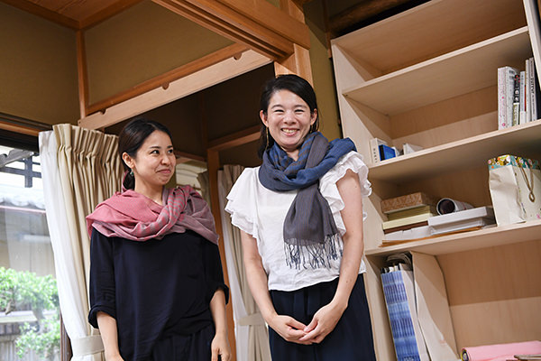 ▲atelier shimuraのお二人がストールを巻いてみてくださいました。