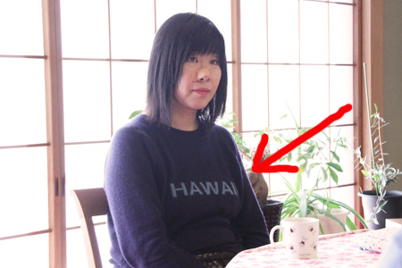 ばななさんはハワイにも よく行かれてますよね。 ‥‥すみません、さきほどから セーターの文字が目に入っちゃって。 ![]() |