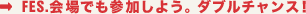 アンケート回答後に画面を表示(画面メモでも可)して、対象FES.会場のタワーレコードブースにおいでください。各種ノベルティが当たる抽選に参加することができます。 |