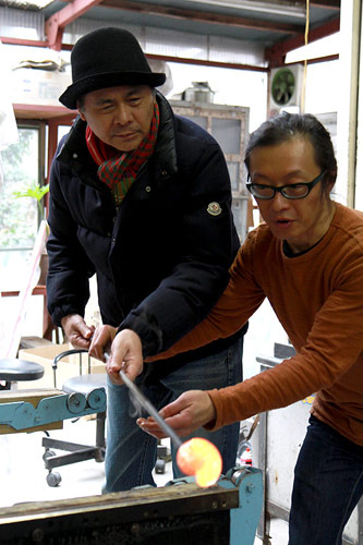「宙吹きガラス」の技法を体験する糸井重里