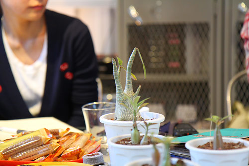 | 清順 | 種をポロッと植えたら、 これがむくむくむくむく、 1週間くらいで ムーミンみたいに出てくるんですよ。 ここにある小さい鉢は 芽が出てから6ヶ月から9ヶ月くらいかな。 1歳くらいになると、こうなる。 |