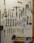 奥に入っていくと、壁一面に工具が掛けられていて、