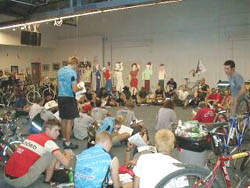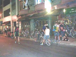 | Cycle Messenger World Championshipsに来ています こんにちは。 『自転車思想』、書いてる本人がビビるくらいの 反響を頂きました。 本当にありがとうございます。 今は旅行中なので、なかなか返信できませんが、 地味にお返事を書いていきますので よろしくお願いいたします。 さて、今回は「自転車屋さんの選び方」、 を書こうと思ったのですが、あっさりと予定変更。 なぜなら、今はバイシクルメッセンジャー世界大会が フィラデルフィアで行われているからです。 僕も現地にいます。 2年前に参加して、今回でやっと2回目です。 ディープなこの世界を、『ほぼ日』読者のみなさんに、 「ちょっとだけ」お見せしましょう。 大会の正式名称は, "Cycle Messenger World Championships"で、 略して"CMWC"と呼ばれます。 1993年にベルリンで開催されたのが最初で、 1994年・ロンドン、 1995年・トロント、 1996年・サンフランシスコ、 1997年・バルセロナ、 1998年・ワシントンDC、 1999年・チューリッヒ、 と続いてきています。 年々規模は大きくなって、 スポンサーもたくさん付いてますが、 今でもメッセンジャーたち自身によって 自主運営されています。 その運営面が面白いので、ちょっと説明します。 翌年の開催地等の要決定事項は、 このCMWCと同時期に行われる、 International Federation of Bicyle Messenger Association (国際自転車便協会連合)、 略称IFBMAのオープンフォーラムにて決定されます。 参加は自由であり、単純な多数決主義を取らず、 参加者全員が拒否権を持ちます。 ただし、それを行使するには当然説明義務が発生しますけど。 まぁ、言うまでもなく全て英語ですので、 参加してもなかなか理解できないのが辛いところです。 もっともっともっと英語力を磨いて 積極的に参加したいのですが…。 でも、この辺りは“生”の民主主義を体感できて、 興味深いです。 さて、今年のCMWCの日程は9/2(土)〜9/4(月)まで。 ちなみに、アメリカでは9月の第1月曜日は国民の休日、 いわゆるLabor Day(勤労感謝の日)です。 まぁ、1年間お疲れさんって言う意味もあるんでしょうね。 でも、これを書いてるのはまだ9月1日なので、 実際の大会はまだ始まっていません。 ようやく今日の夜が前夜祭なんですが、 すでに大会本部や、フィラデルフィアの何軒かのバーは、 世界中から集まったバカ、 もといメッセンジャーでいっぱいです。 何たって、参加人数は700人以上になるんですから。 例えば昨日みんなが集まったバーはこんな感じでした。 マジで立錐の余地もありません。 みんな自転車に乗ってる以上、 バーの外には自転車が溢れています。 この道路の反対側にも同じように自転車の林ができてました。 こうやって、欧米・オセアニア・日本から年に1度、 メッセンジャーという生き方に魅せられたバカどもが、 世界のどこかに集まって、お互いの無事を喜びあい、 レースをして、飯を食って、 ビールを飲んで数日を過ごすのです。 一応チャンピオンシップですから、 真剣に勝ちを狙ってるメッセンジャーもいます。 でも、僕はこの国際的な“ユルイ”コミュニテイーの 中にいる方が、楽しさを感じるし、 知的好奇心をバキバキ刺激されます。 実際、お金がないメッセンジャーは、 現地のメッセンジャーの家にステイしたりして、 お金がないなりに楽しめるようにはなっています。 もちろん、これはギブアンドテイクであり、 以前世話をしてくれた相手が、 今度はステイさせてもらう立場になったりもします。 ちょっと性善説的な幻想かもしれませんが、 国境を超えた、メッセンジャーという人種が 存在するかのようです。 僕も、これまでいろんな街のメッセンジャーたちに お世話になりました。 一人である街を訪れ、 その街で働いているメッセンジャーに話しかければ、 「お前は東京のメッセンジャーなのか? この街へようこそ! 泊まる先はあるのか? なかったら俺んちに来いよ」 なんて言ってくれるのも珍しくはありません。 だから、彼らが日本に来た時は ぜひとも助けてあげたいと思います。 でも、東京での一人暮らしでは、 ただでさえ大きい欧米人を泊めてあげるのは至難の技です。 ちょっと頑張って広い部屋に引っ越そうかなぁ、 とも考えている最中なのです。 この辺り、衣食住全てが高価な日本の環境が 恨めしく思えますね。 レースの模様は次回で。 Ride safe! |