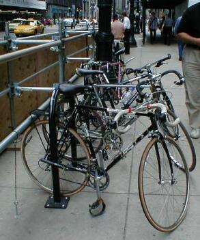 | 第8回 自転車泥棒 こんにちは。 今、これを読んでいる方の中で 自転車を盗まれた経験のある人は…、 けっこういるんじゃないかと思います。 カギはかけてましたか? ダイヤル錠の場合、全ての桁の数字を動かしましたか? ワイヤーは、ワイヤーカッターで切断できないくらい 太いものを使用していましたか? 自転車を何かと固定していましたか? それでも、盗られる時は盗られます。残念ながら。 そういう憎たらしい自転車泥棒の話です。 僕は幸いなことに、 自転車そのものを盗られたことはありません。 でも、去年の夏にサンフランシスコで 自転車の後輪だけを持って行かれたことがあります。 忘れもしない、郵便局に切手を買いに行った時のことです。 現地の自転車乗りがカギをかけるやり方をならって、 自転車のフレームと前輪を、 歩道脇の街灯の柱にしっかりと固定したにも関らずです。 僕が約10分くらいで戻ってきたら、 後輪の無い、無残な自転車になってました。 もう、腹が立つやら悔しいやら……。 僕の自転車の後輪が盗まれたことを知った、 向こうの友人が僕に一言、 "Welcome to America!" だって。 よく言うよ、って感じですけどね〜。 日本でも自転車の盗難は頻繁に起きますが、 海外、とくにアメリカの現状は、 想像も絶するくらい深刻なものです。 “ちょっと拝借”的な自転車泥棒が多い日本と異なり、 向こうはあくまでプロフェッショナル。 まるで映画の『60セカンズ』ですね。 サンフランシスコの大通りを自転車で走っている時、 いかつい黒人に呼びとめられたことがありました。 手にはピカピカ光る自転車のパーツ、 それもけっこう高級なものでした。 どうやって入手したかは、言わずもがな。 盗難自転車のマーケットがしっかりと存在しているのです。 アメリカの都市で駐輪する場合、 必ず、自転車を何かと固定しなくては意味がありません。 例えばこんな具合です。 ![]() 自転車だけにカギをかけたとしても、 クルマでやってくる自転車泥棒には関係無し。 あっさりと持っていってくれます。 また、タイヤだけを固定した場合も、 泥棒は決して容赦してくれません。 外せるところは全て持って行ってしまい、 タイヤだけが取り残されていることになります。 自転車を固定できる鉄柱や鉄柵が見つかっても油断は禁物。 実はそれ自体がすっぽ抜けるという危険性もあります。 手でゆすってグラグラしないかどうかチェックが必要です。 例えすっぽ抜けないにしても、グラついていると テコの原理でカギを破壊することが可能だったりもします。 当然、カギにもそれ相応のコストが必要です。 自転車を買った時に付いてくるようなカギでは、 全くといっていいほど役に立ちません。 この辺り安全にお金を払うのは当たり前という、 グローバルスタンダードな常識を痛感させられます。 (ちなみに、僕が海外で使うU字ロックは$59、 日本円で約¥6300しました。) あと、新品の自転車と古い自転車では、 当然新しい方が狙われます。 だから、自転車を買って、あえて汚しを入れる人もいます。 シカゴの友人、デイブ・グロワッツの著書、 "Urbanbikers' Trick & Tips"という本の目次には、 ご丁寧にも"How to Uglify Your Bike" (自転車の汚しかた)というページが作られていました。 ステッカーや、油性マジックを使って、 とにかく自転車を汚くしてしまえば、 泥棒もめったに目をつけない、というわけです。 でも、それすらも甘いと思わせるのが、 世界で一番自転車泥棒が活躍する街、ニューヨーク。 一応、僕の持っているU字型のロックには、 $2000の盗難補償が付いているのですが、 まことしやかなウワサでは“マンハッタンは除く”と 保証書に書いてあるとのことです。 ![]() この街で働くメッセンジャーの必須アイテムがこれです。 その重量2.77キロ、 値段も約$90ですから、1万円弱です。 僕がニューヨークに行った時も、 会うメッセンジャーがみんな一様に、 「このチェーンを使わないとダメだよ。」 と言ってましたね。 それはもう、うるさいくらいに忠告してくれました。 (ちなみに、このチェーンを製造している クリプトナイト社のキャッチコピーは "Tough World, Tough Locks"だそうです。 ムムゥ。何だか納得させられます。) ニューヨークの自転車泥棒は、 どんな新しい形式のカギが現れても、 3〜6ヶ月あれば破る方法を発見してしまうそうです。 例えば、頑丈この上ないように見えるU字ロックですら、 冷却材を使って瞬間的に凍らせてしまうと、 金属の持つ粘りがなくなって、 ハンマーで一気に破壊できてしまうそうです。 よくもまぁ、そんなこと考えつくものですねぇ。 ただし、破壊するのに5分以上かかる場合は、 さすがの泥棒たちも敬遠するとのこと。 そうなると問題は “カギが破られないこと”ではなく、 “破るのにかかる時間の長さ”が重要なのです。 つまり、上の極太チェーンは 単純に切るのに時間がかかるから、 “比較的”狙われにくいのです。 実際、この手のチェ