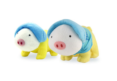 | ブタフィーヌさんのストラップ (おすまし)&(にっこり) 価格:各840円(税込) 体長:約90ミリ 高さ:約58ミリ 身幅:約55ミリ 重さ:約20g *手づくりのため、サイズ、重さには若干の個体差があります。 |