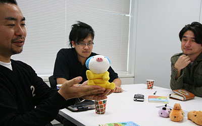 そうですね。 あのとき、糸井さんのお話で、 すっごくおもしろかったのが、 お金をかけて、広告を使って 売り出すキャラクターっていうのは、 たぶんすぐできてしまうのだろうと。 でも、それでは、おもしろくないよねと。 うちが、UFOキャッチャー用のぬいぐるみを 手がけていたこともあって、 たとえばUFOキャッチャーから発信された キャラクターって、あまり、 いままでないんじゃなかろうかって。 そういうところから「育つキャラクター」、 いままでとちがう方向性で育ってくる キャラクターみたいな形でやってみたら おもしろいんじゃないかな、 みたいな話をいただいたんです。 |