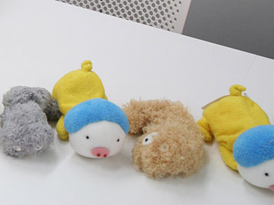 そうそうたるキャラクターたちですよ‥‥ ブタフィーのぬいぐるみを、 こんなすごい会社で、 つくっていただいたんですね。 |