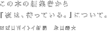 『夜は、待っている。』はこんな本です。  本の世界を簡単に紹介する動画をつくりました。 約4分ほどです。クリックしてご覧ください。