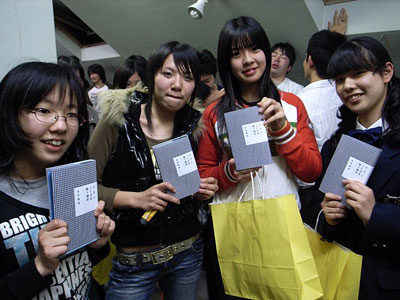 | お父さん | うん。すごくいい本やなぁと思うてました。 でも「うちの塾の生徒たちに贈る」というところまでは わたしは思いつかんかったのですわ。 それで、娘から提案してもらって いいアイデアだと思って注文したんです。 生徒全員分。 |