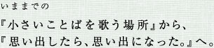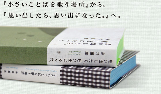 | 真由美さん | そのころ、ふと、ほぼ日で見た 『小さいことばを歌う場所』のことを思い出して 「この本はどうかな?」って父に提案したんです。 |