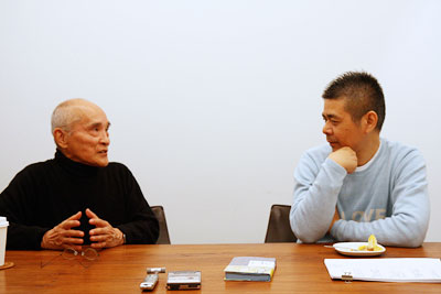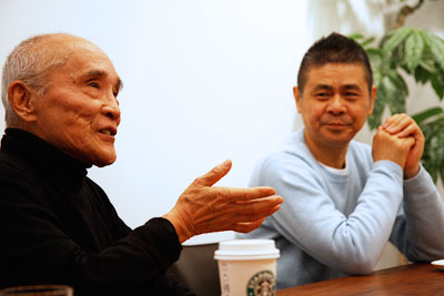 | 谷川 | あの、みんな、詩っていうのは なんかすごく深いもので、 たいしたもんだと思う傾向があるけど、 ぼくはね、詩っていうのは、 本当にいい加減でチョロいものだと 思っているんですよ。 だいたい枚数からして違うんじゃないですか。 700枚の詩なんてだれも書きませんよね。 せいぜい原稿用紙1枚か2枚でしょ。 だから、長編小説を書いてる人の 「重さ」に対してはね、 ぼくは、やっぱり畏怖の念がありますね。 ![]() |