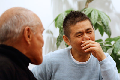 | 谷川 | あこがれますね、ぼくは。 「黙っていられるなんて素敵」って。 ぼくは無口なんですよ、基本的に。 こういうところでは、 一生懸命しゃべっていますけどね、 相当無理してしゃべってるんですから(笑)。 ![]() |