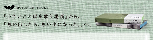 | 糸井 | ええと、それでですね、先日、 『小さいことばを歌う場所』の続きというか、 つぎの1年をまとめた本がまとまりまして。 『思い出したら、思い出になった。』 という本なんですけど。 |