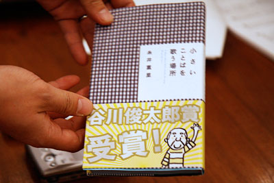 | 糸井 | 1年前、 『小さいことばを歌う場所』を 出したときになんと 「谷川俊太郎賞」の受賞を 谷川さんご本人から、 口頭で伝えていただきまして。 |